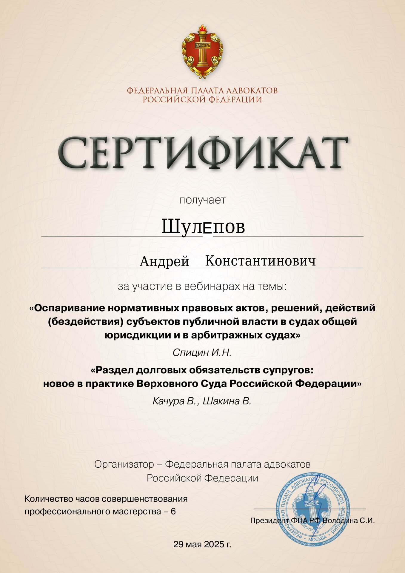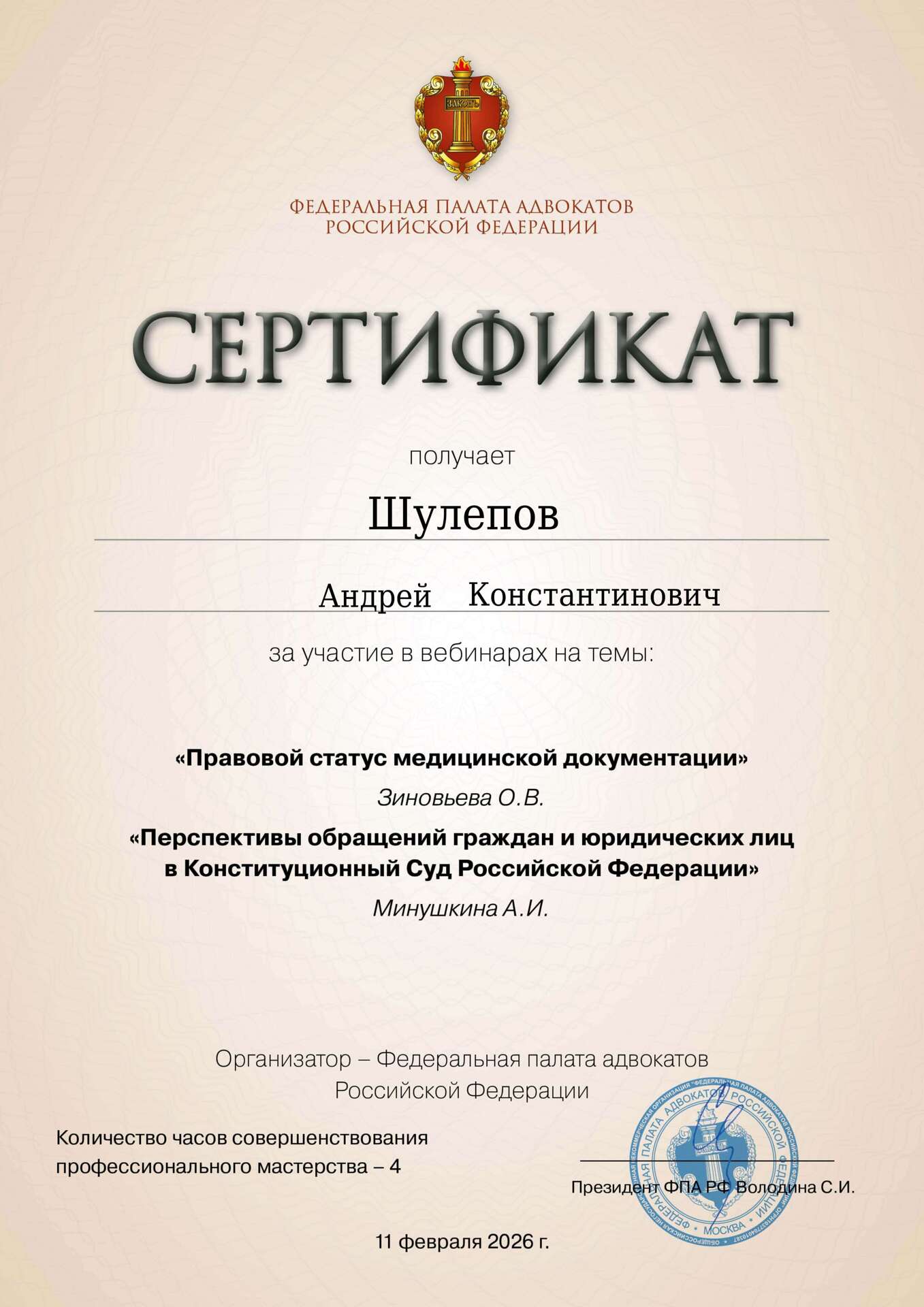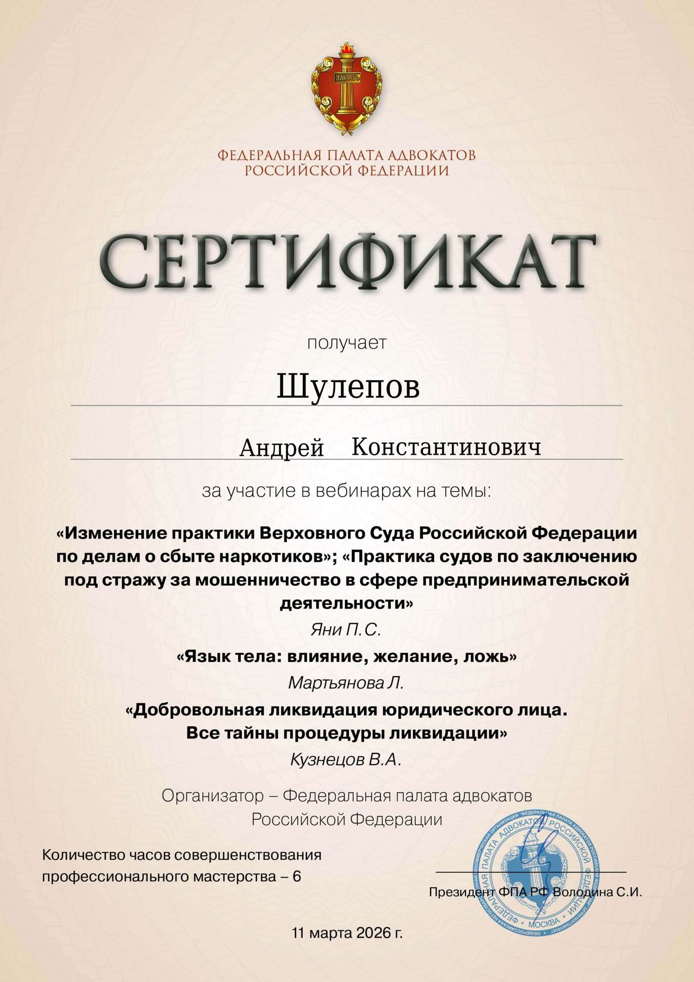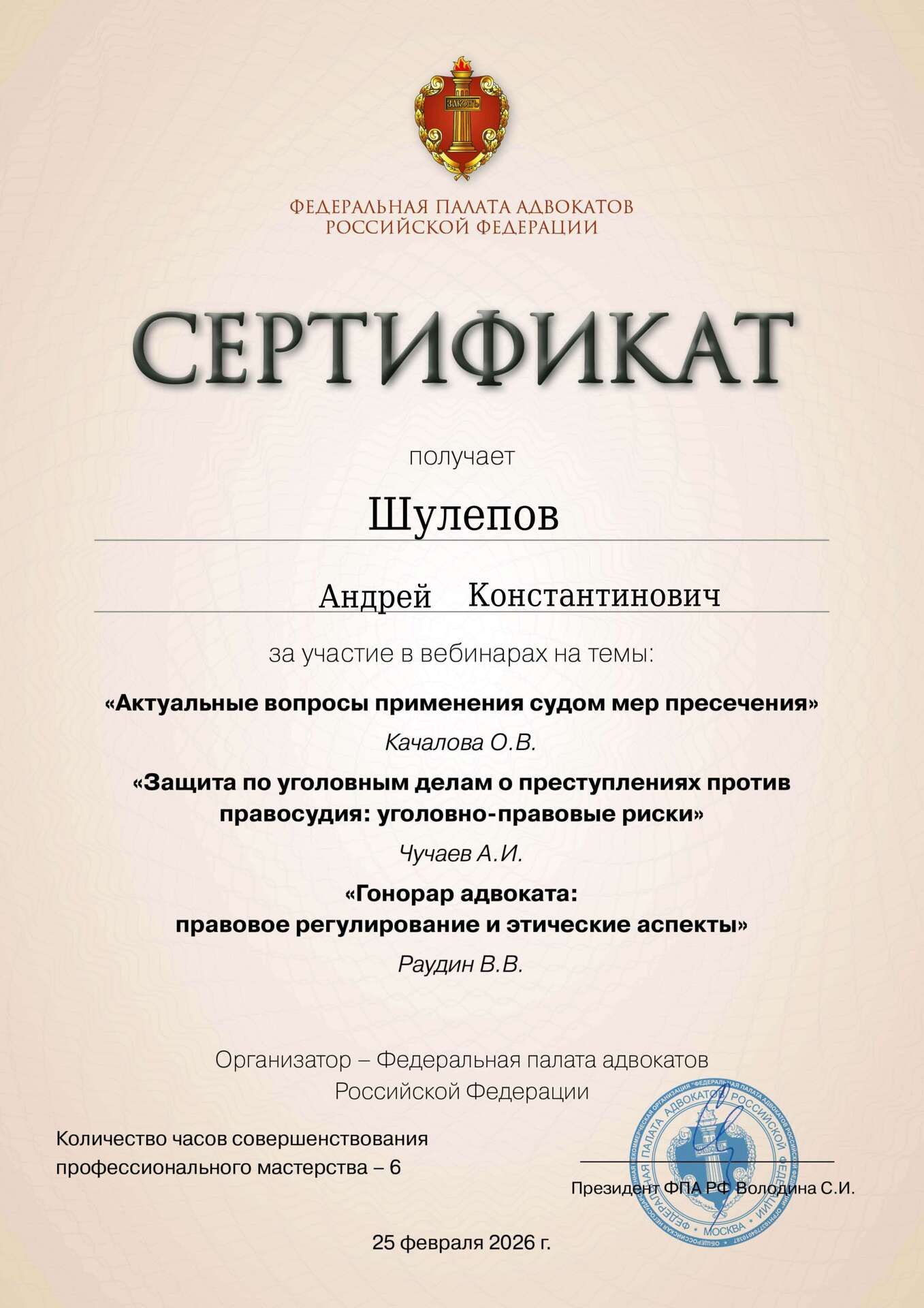 С 2016 года - действующий адвокат, член Московской адвокатской палаты. Зарегистрировал собственный адвокатский кабинет.