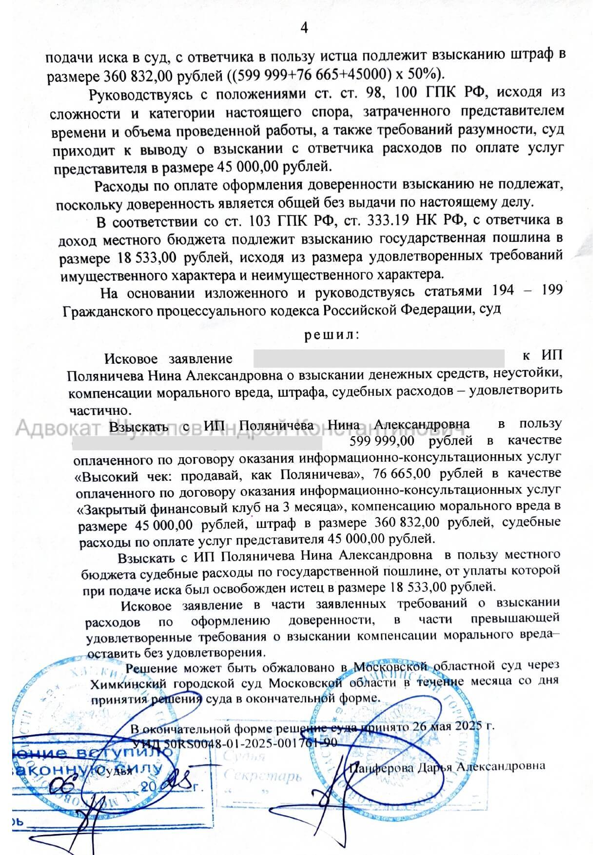 Купила онлайн-курс, но он мне не понравился. Мне отказали в возврате денег. Андрей Константинович грамотно составил претензию. Мне вернули 100% оплату! Я его порекомендовала дочери. Ей он тоже помог вернуть деньги за непонравившиеся курс.